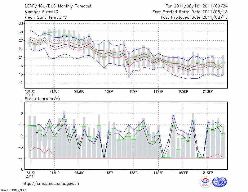 哈 密 (LAT:42.82 LON:93.52) 2011-08-16        预测