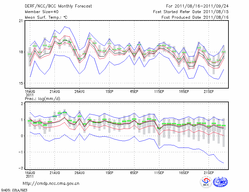 丽 江 (LAT:26.83 LON:100.47) 2011-08-16        预测