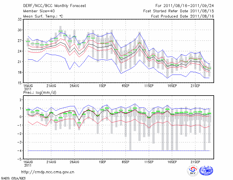 西 安 (LAT:34.30 LON:108.93) 2011-08-16        预测