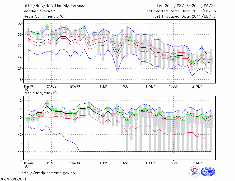 岳 阳 (LAT:29.38 LON:113.08) 2011-08-16        预测