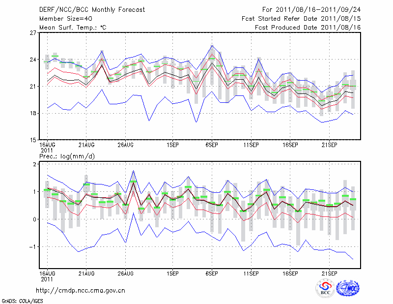 毕 节 (LAT:27.30 LON:105.23) 2011-08-16        预测