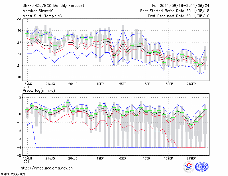 蚌 埠 (LAT:32.95 LON:117.37) 2011-08-16        预测