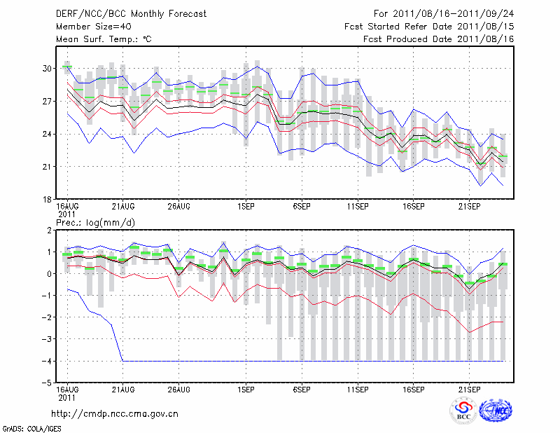 南 京 (LAT:32.00 LON:118.80) 2011-08-16        预测