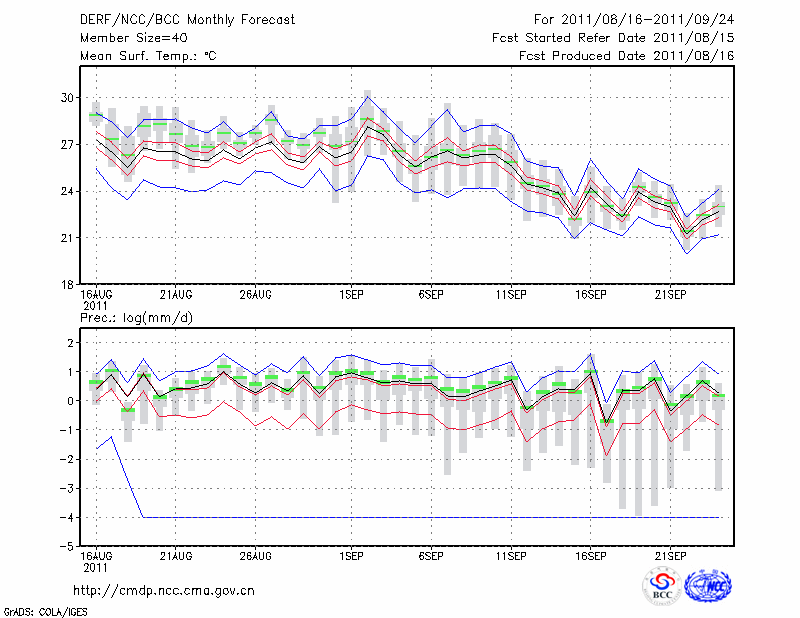 东 台 (LAT:32.87 LON:120.32) 2011-08-16        预测