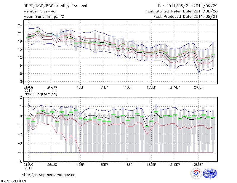 鸡 西 (LAT:45.28 LON:130.95) 2011-08-21        预测