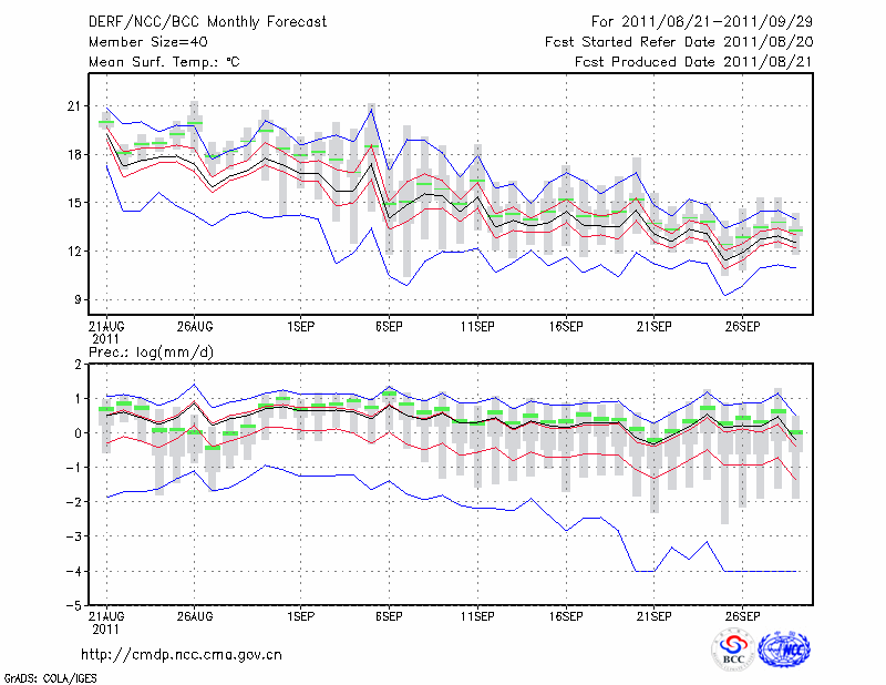 临 夏 (LAT:35.58 LON:103.18) 2011-08-21        预测