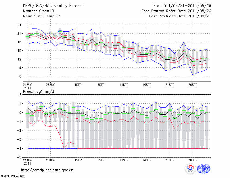 牡 丹 江 (LAT:44.57 LON:129.60) 2011-08-21        预测