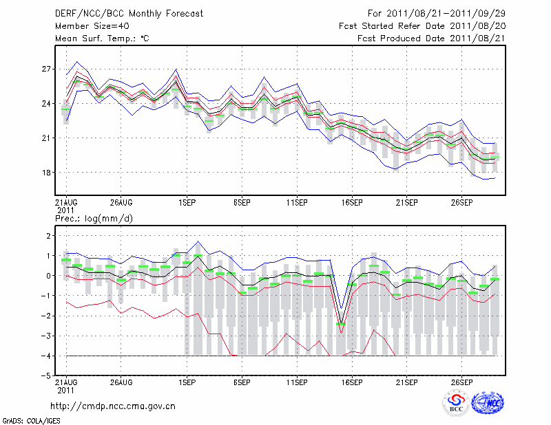 大 连 (LAT:38.90 LON:121.63) 2011-08-21        预测