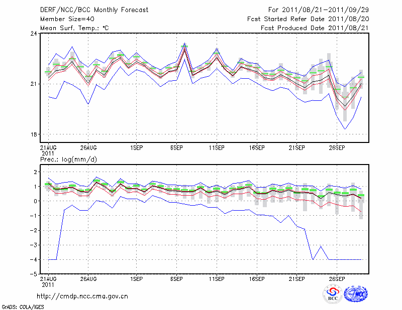 临 沧 (LAT:23.95 LON:100.22) 2011-08-21        预测