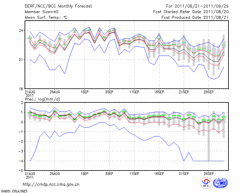 蒙 自 (LAT:23.38 LON:103.38) 2011-08-21        预测