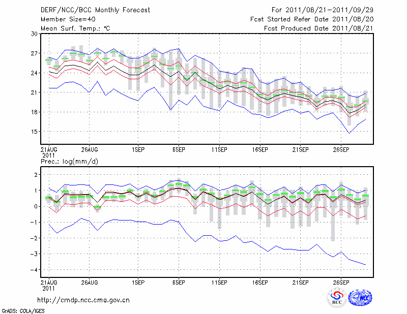 汉 中 (LAT:33.07 LON:107.03) 2011-08-21        预测