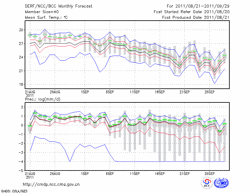芷 江 (LAT:27.45 LON:109.68) 2011-08-21        预测