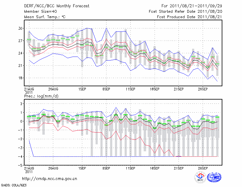 阜 阳 (LAT:32.93 LON:115.83) 2011-08-21        预测