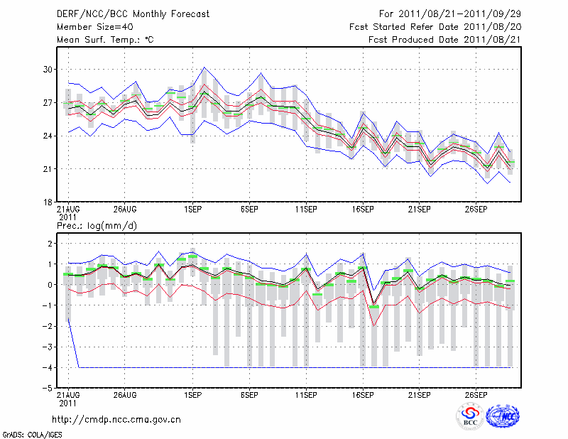 东 台 (LAT:32.87 LON:120.32) 2011-08-21        预测
