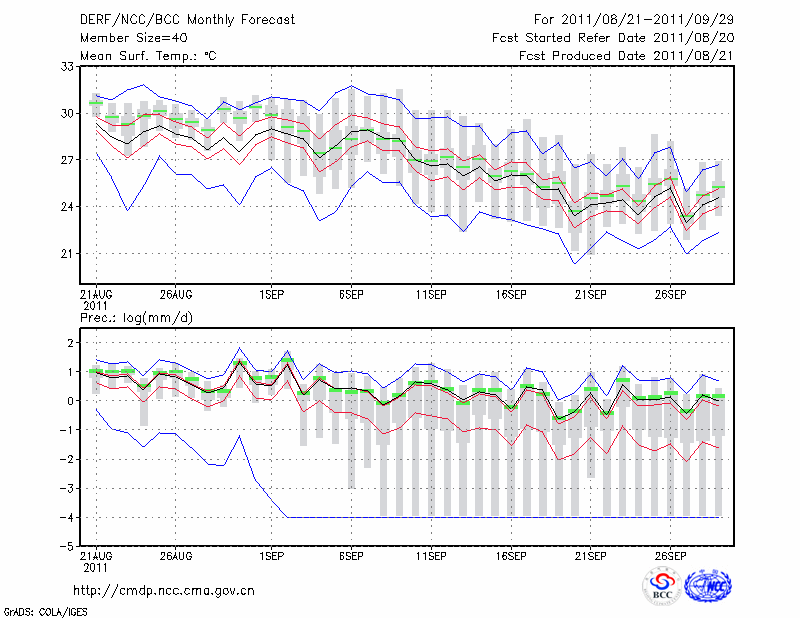 南 昌 (LAT:28.60 LON:115.92) 2011-08-21        预测