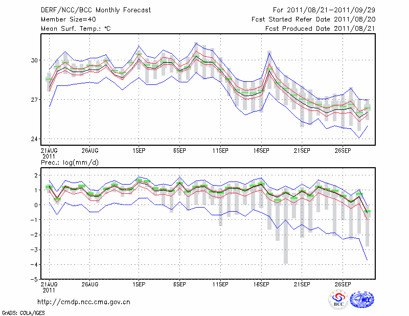 福 州 (LAT:26.08 LON:119.28) 2011-08-21        预测