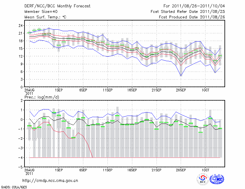 哈 尔 滨 (LAT:45.75 LON:126.77) 2011-08-26        预测