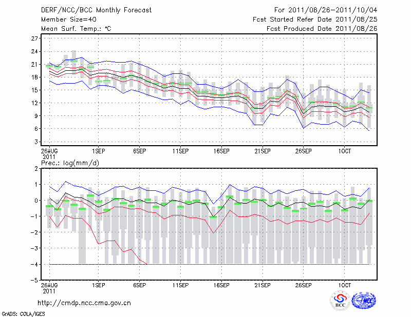 鸡 西 (LAT:45.28 LON:130.95) 2011-08-26        预测