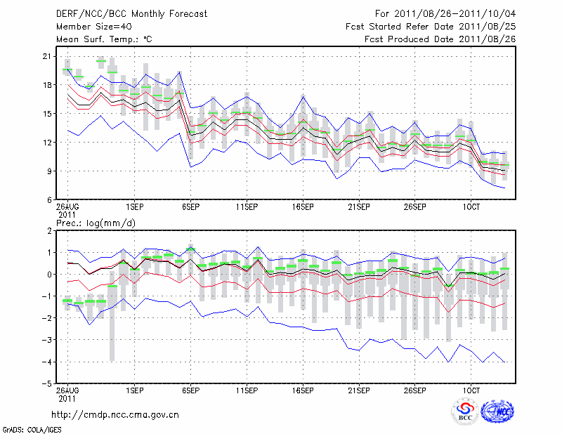 西 宁 (LAT:36.62 LON:101.77) 2011-08-26        预测