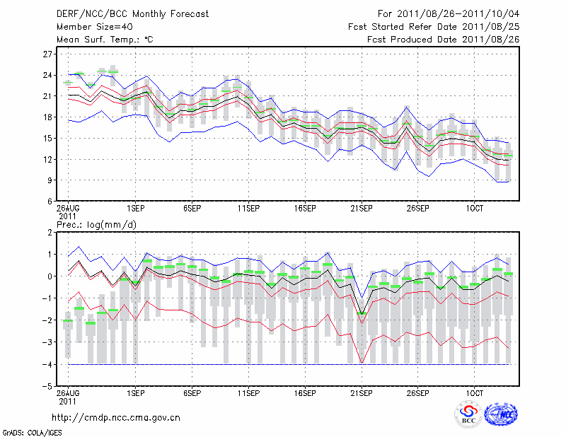 银 川 (LAT:38.48 LON:106.22) 2011-08-26        预测