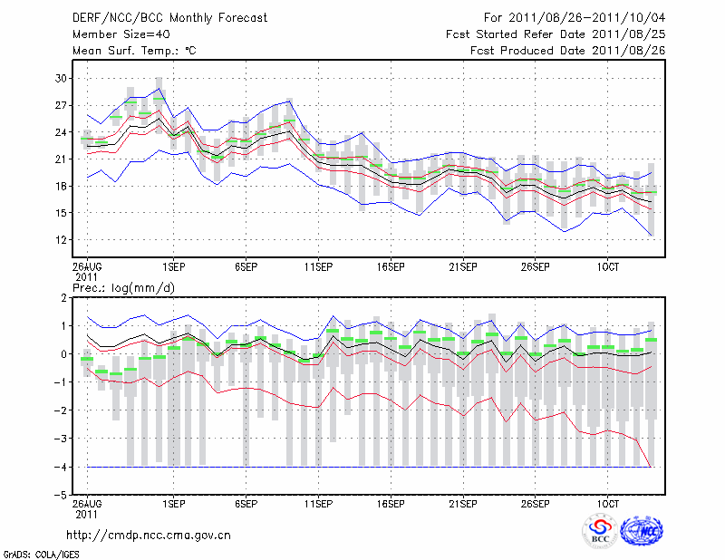 临 汾 (LAT:36.05 LON:111.32) 2011-08-26        预测