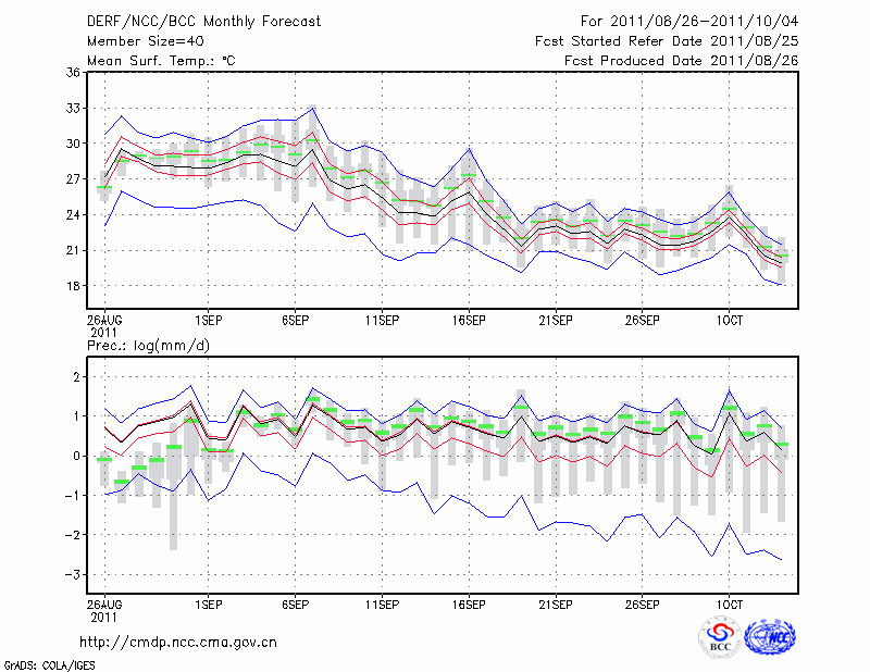 南 充 (LAT:30.80 LON:106.08) 2011-08-26        预测