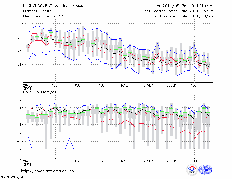 恩 施 (LAT:30.28 LON:109.47) 2011-08-26        预测
