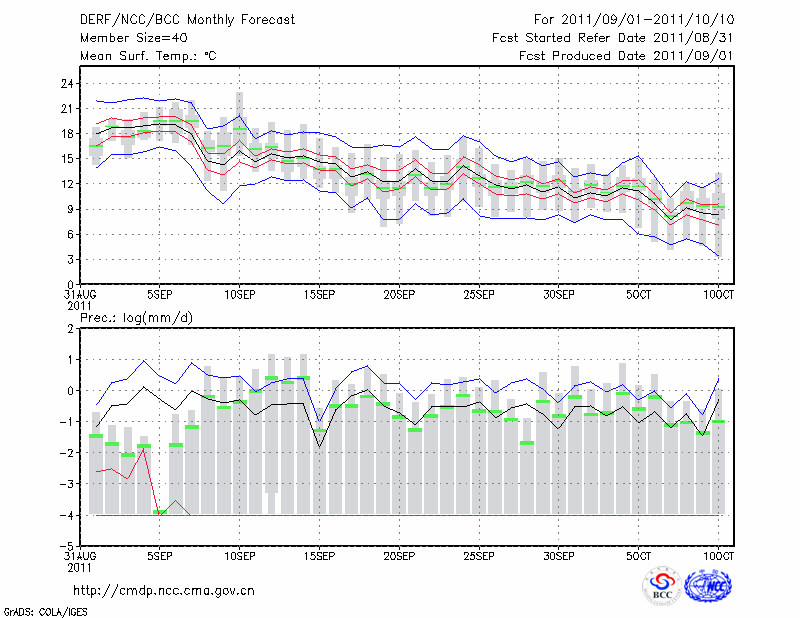 齐齐哈尔 (LAT:47.38 LON:123.92) 2011-09-01        预测