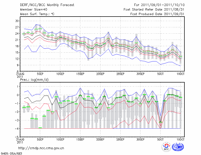 乌 苏 (LAT:44.43 LON:84.66) 2011-09-01        预测