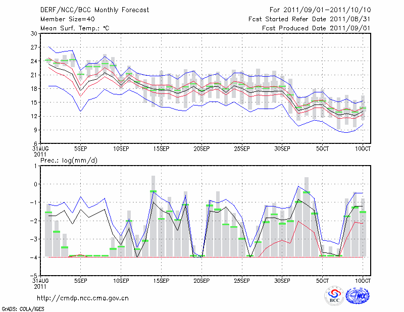 哈 密 (LAT:42.82 LON:93.52) 2011-09-01        预测