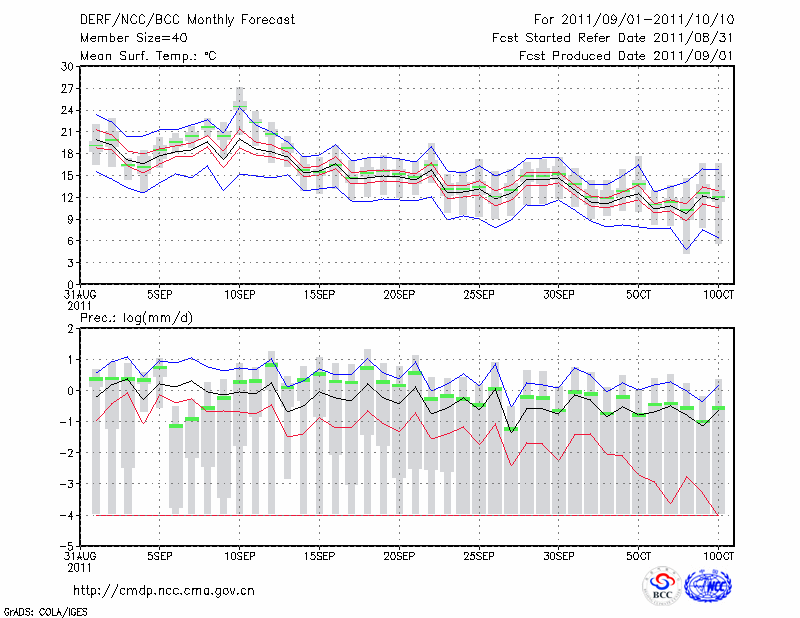 包 头 (LAT:40.66 LON:109.85) 2011-09-01        预测