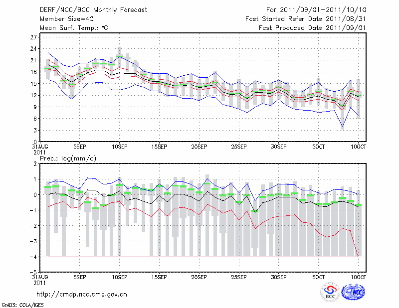 呼和浩特 (LAT:40.82 LON:111.68) 2011-09-01        预测