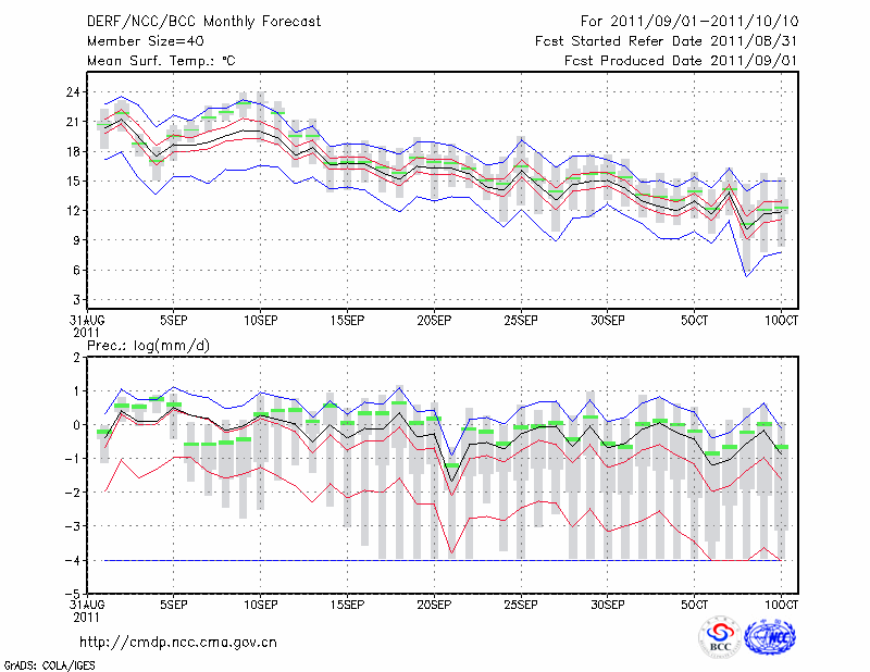 银 川 (LAT:38.48 LON:106.22) 2011-09-01        预测