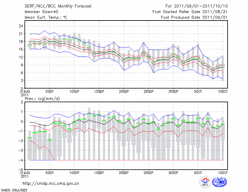牡 丹 江 (LAT:44.57 LON:129.60) 2011-09-01        预测