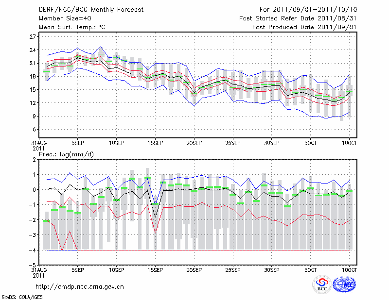 沈 阳 (LAT:41.77 LON:123.43) 2011-09-01        预测