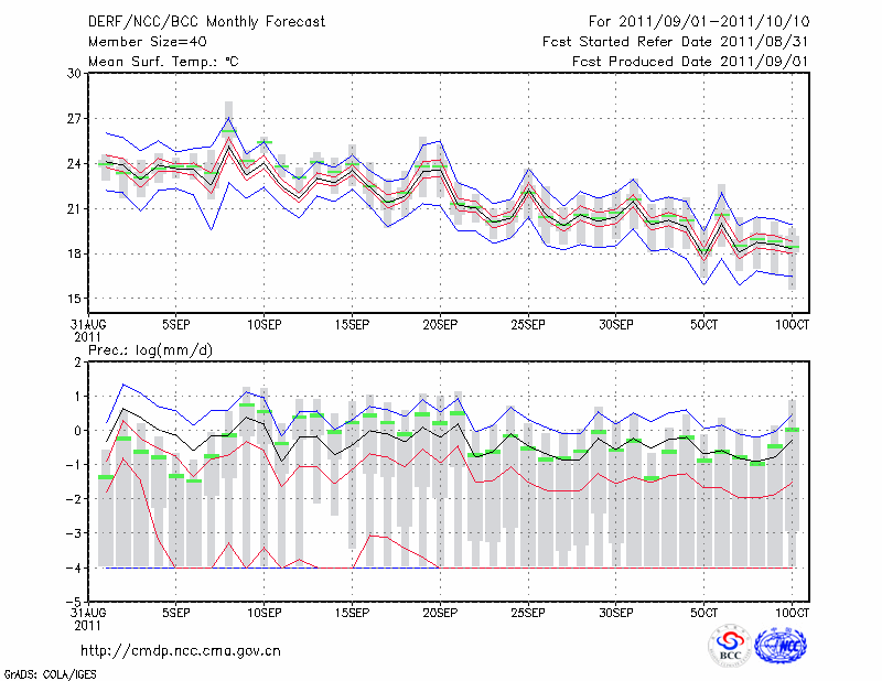 潍 坊 (LAT:36.70 LON:119.08) 2011-09-01        预测