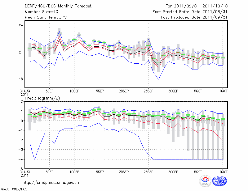 临 沧 (LAT:23.95 LON:100.22) 2011-09-01        预测