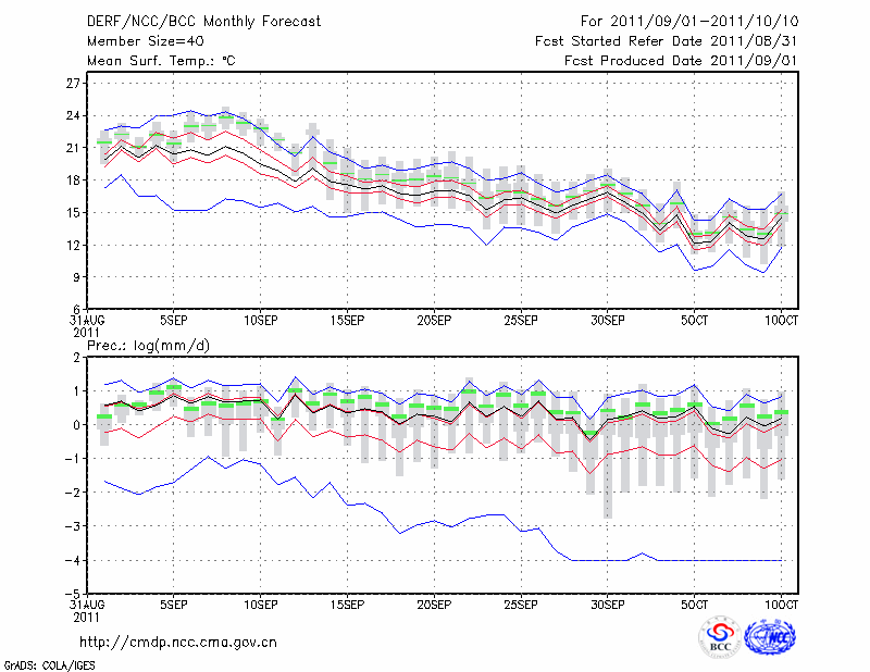 天 水 (LAT:34.58 LON:105.75) 2011-09-01        预测