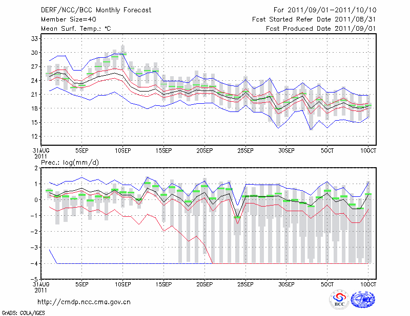 信 阳 (LAT:32.13 LON:114.05) 2011-09-01        预测