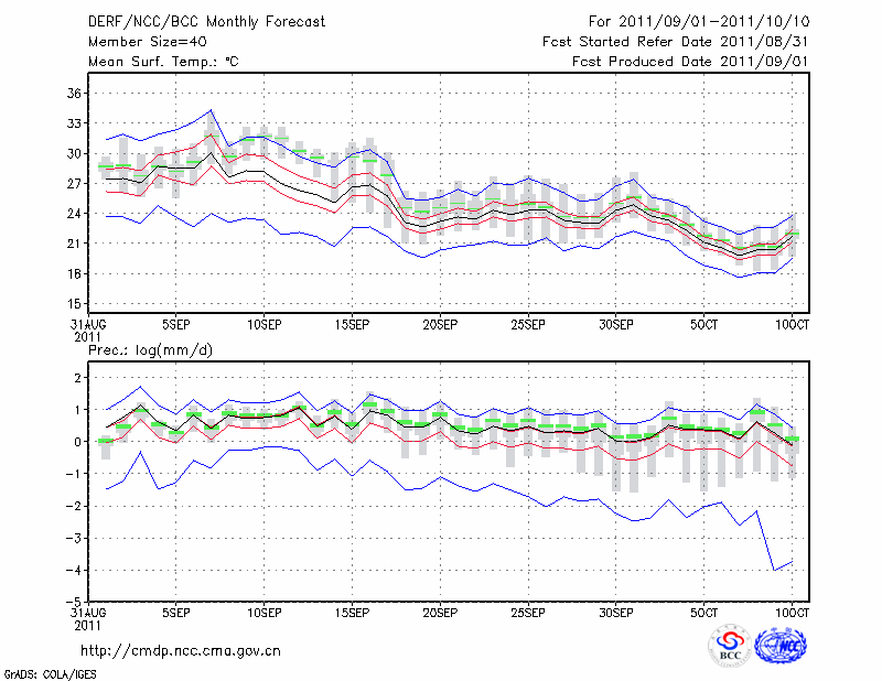 重 庆 (LAT:29.52 LON:106.48) 2011-09-01        预测