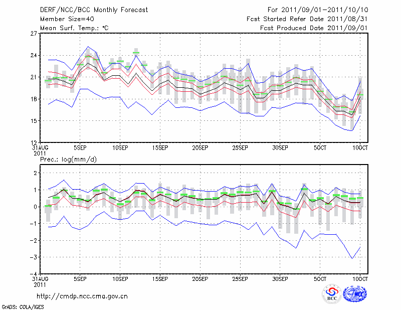 毕 节 (LAT:27.30 LON:105.23) 2011-09-01        预测
