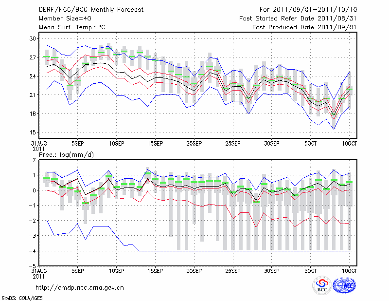 芷 江 (LAT:27.45 LON:109.68) 2011-09-01        预测