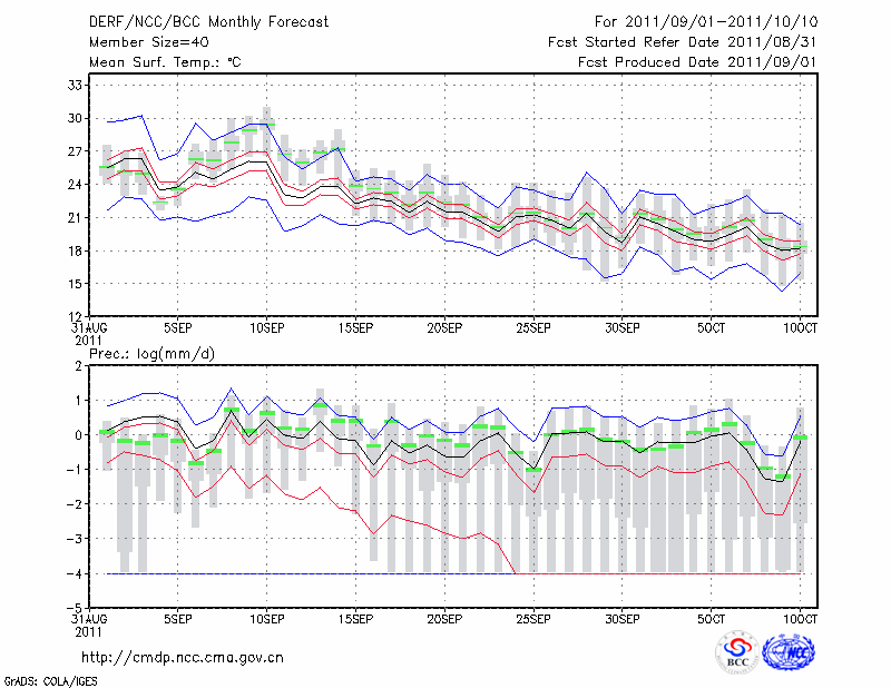 阜 阳 (LAT:32.93 LON:115.83) 2011-09-01        预测
