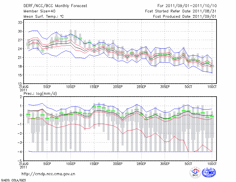 南 京 (LAT:32.00 LON:118.80) 2011-09-01        预测
