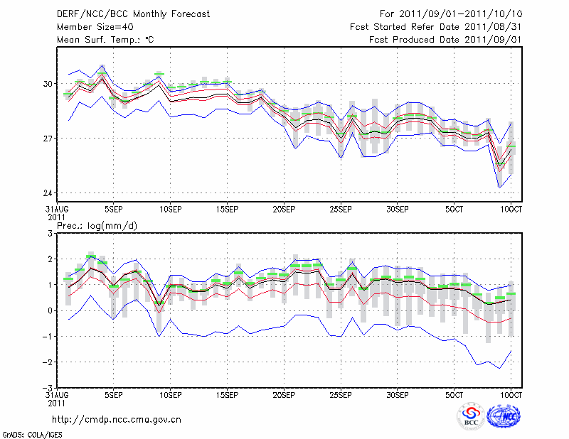 湛 江 (LAT:21.22 LON:110.40) 2011-09-01        预测
