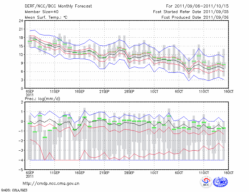 鸡 西 (LAT:45.28 LON:130.95) 2011-09-06        预测