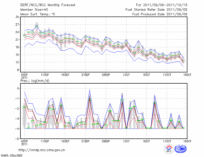 若 羌 (LAT:39.03 LON:88.17) 2011-09-06        预测