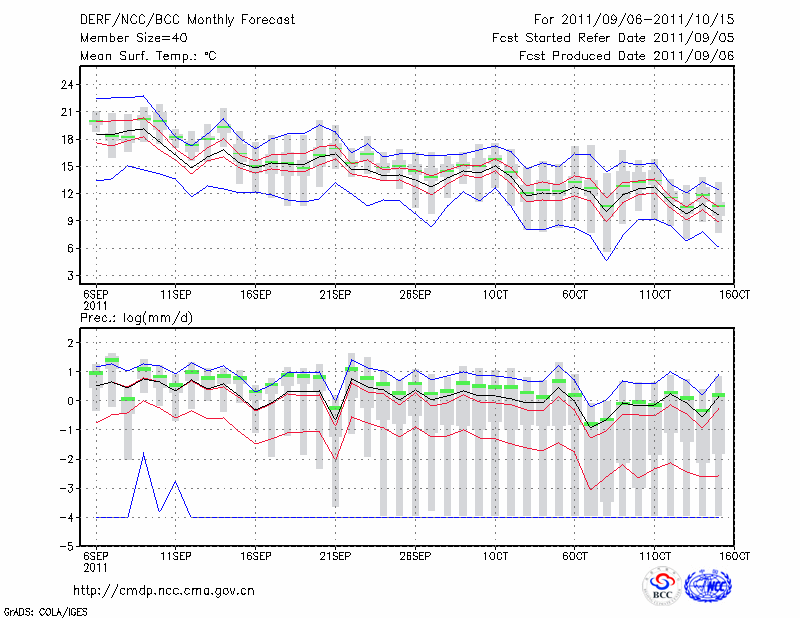 西 峰 镇 (LAT:35.73 LON:107.63) 2011-09-06        预测