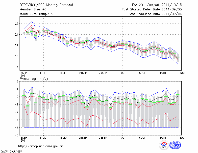 青 岛 (LAT:36.07 LON:120.33) 2011-09-06        预测