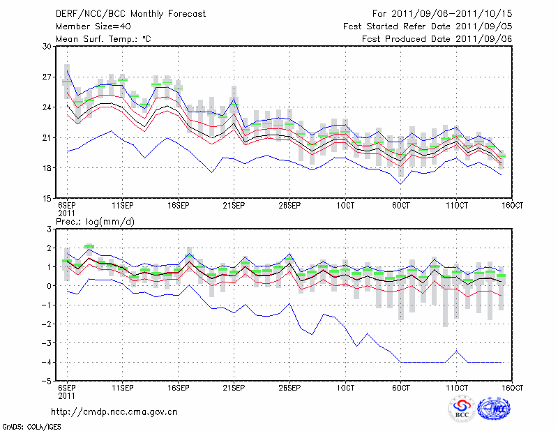 雅 安 (LAT:29.98 LON:103.00) 2011-09-06        预测